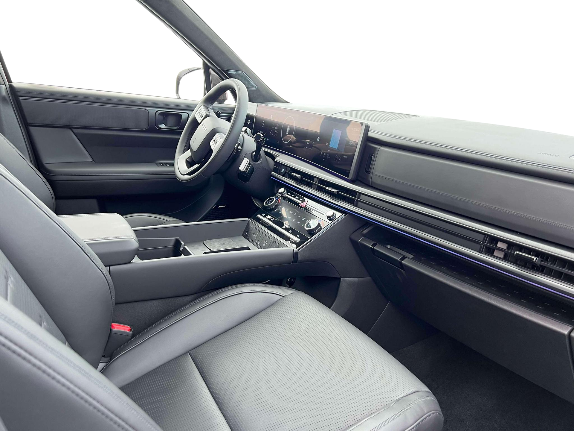 - Radio: AM/FM/HD Bose Premium Audio System -inc: 12 speakers including subwoofer, external amplifier, 12.3" wide touchscreen, Apple CarPlay and Android Auto, Bluetooth® hands-free w/wireless audio streaming, dynamic voice recognition, USB connectivity, SiriusXM, wifi hotspot, Blue Link connected car system, navigation system including traffic flow w/incident data via HD Radio (HERE), OTA updates (map only) and rear seat quiet mode